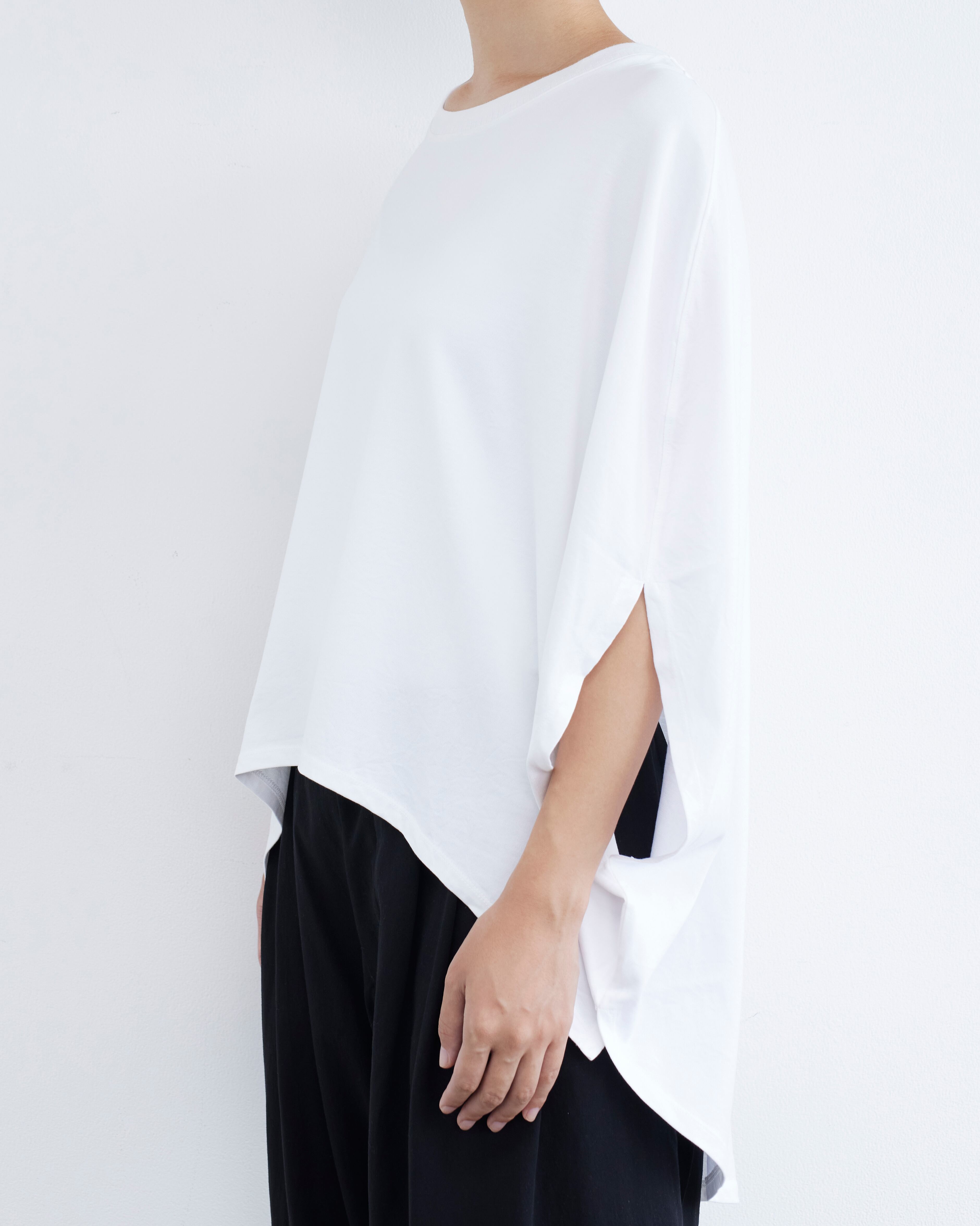 MARU TEE ・シンプルでユニークなデザインが特徴 ・直径80センチの円形パターン ・細番手の糸を3本撚りしたコットン100%の上質な素材 ・柔らかな肌触りと滑らかな質感 ・表面に微起毛加工あり ・ネック部分にロゴ刺繍 ※ご購入前に画像でサイズをご確認ください。 Men Model 175cm Women Model 164cm