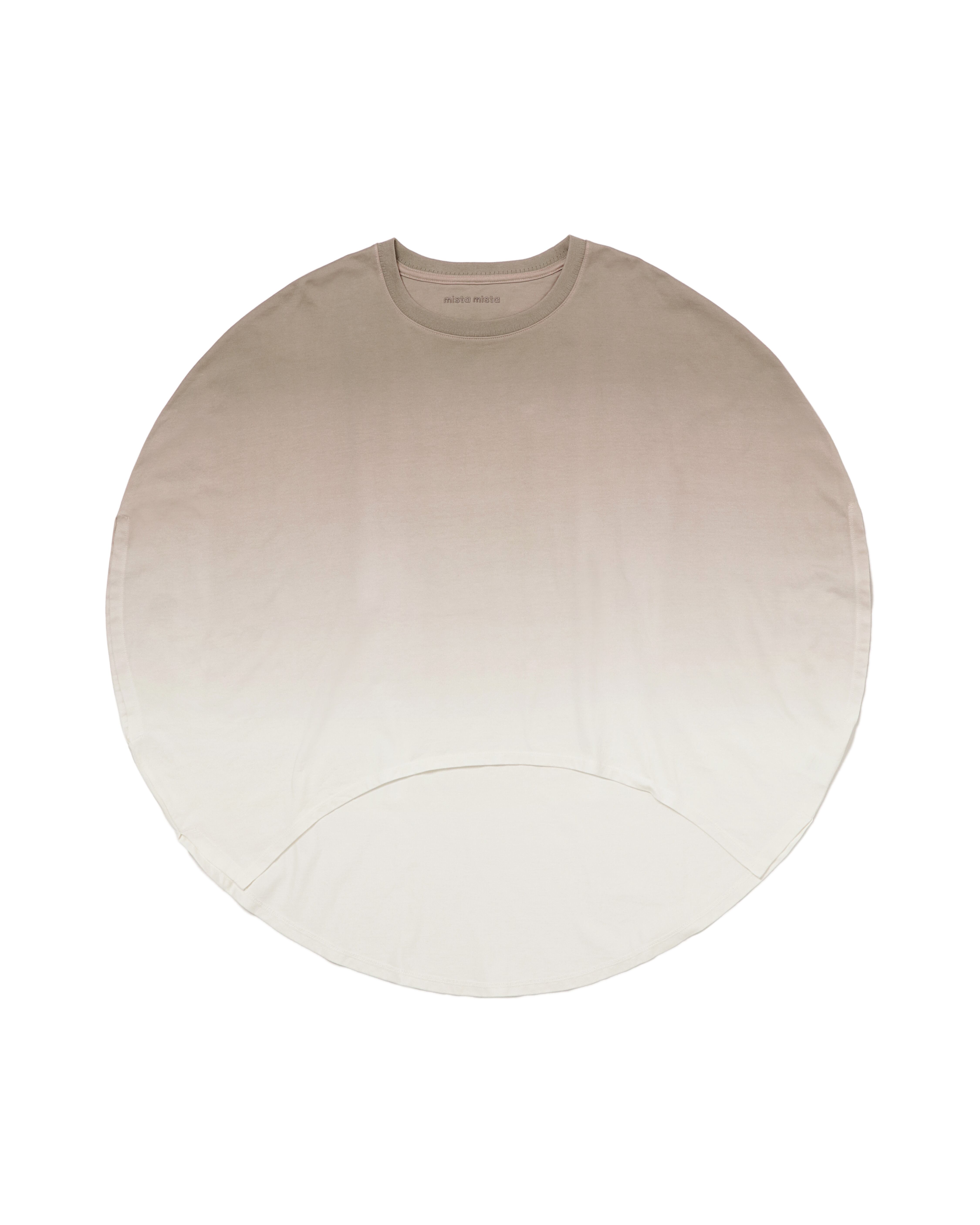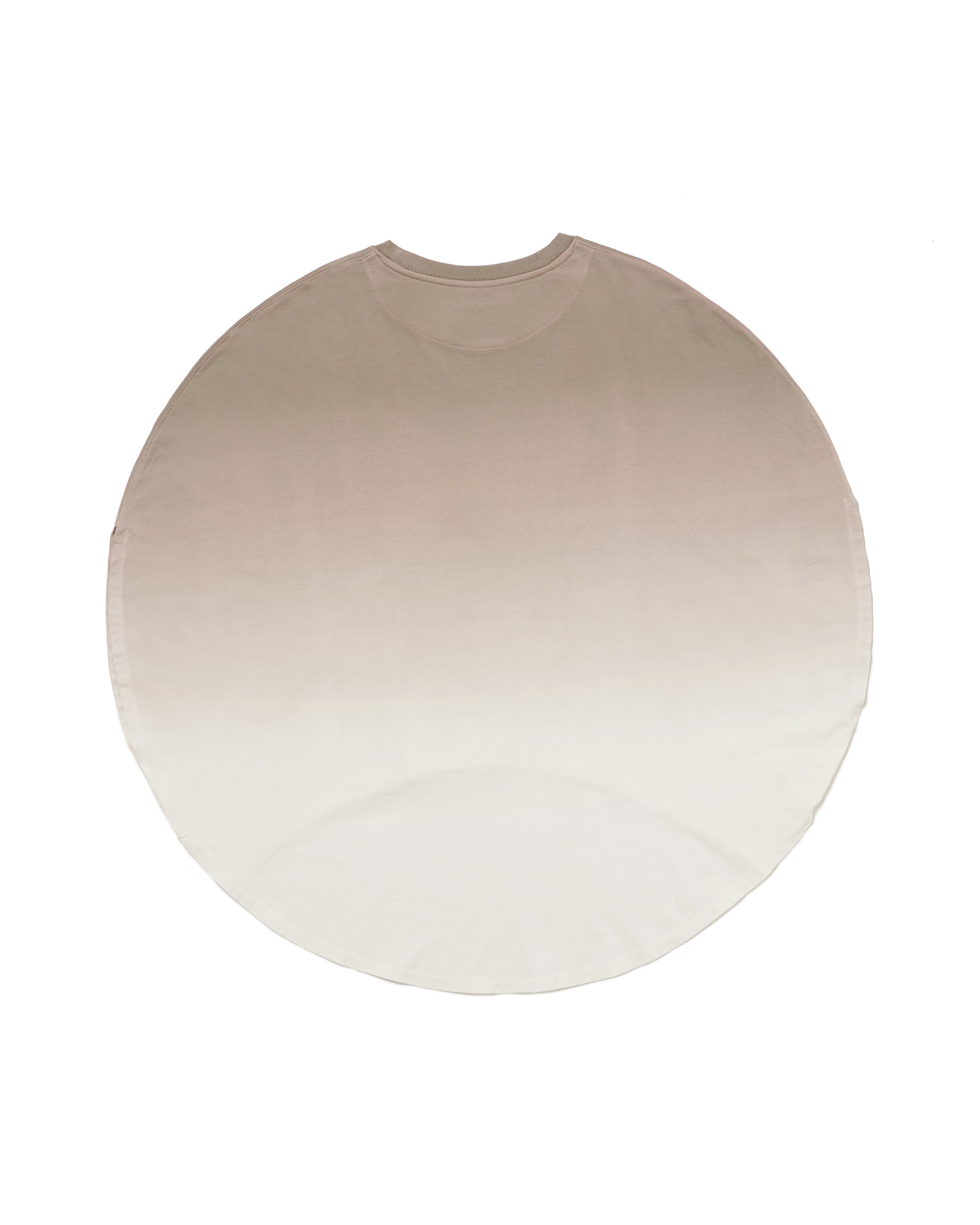 MARU TEE ・シンプルでユニークなデザインが特徴 ・細番手の糸を3本撚りしたコットン100%の上質な素材 ・柔らかな肌触りと滑らかな質感 ・直径80センチの円形パターン ・ネック部分にロゴ刺繍 ・職人の手作業によるグラデーション染色 ※ご購入前に画像でサイズをご確認ください。 Men Model 175cm Women Model 164cm