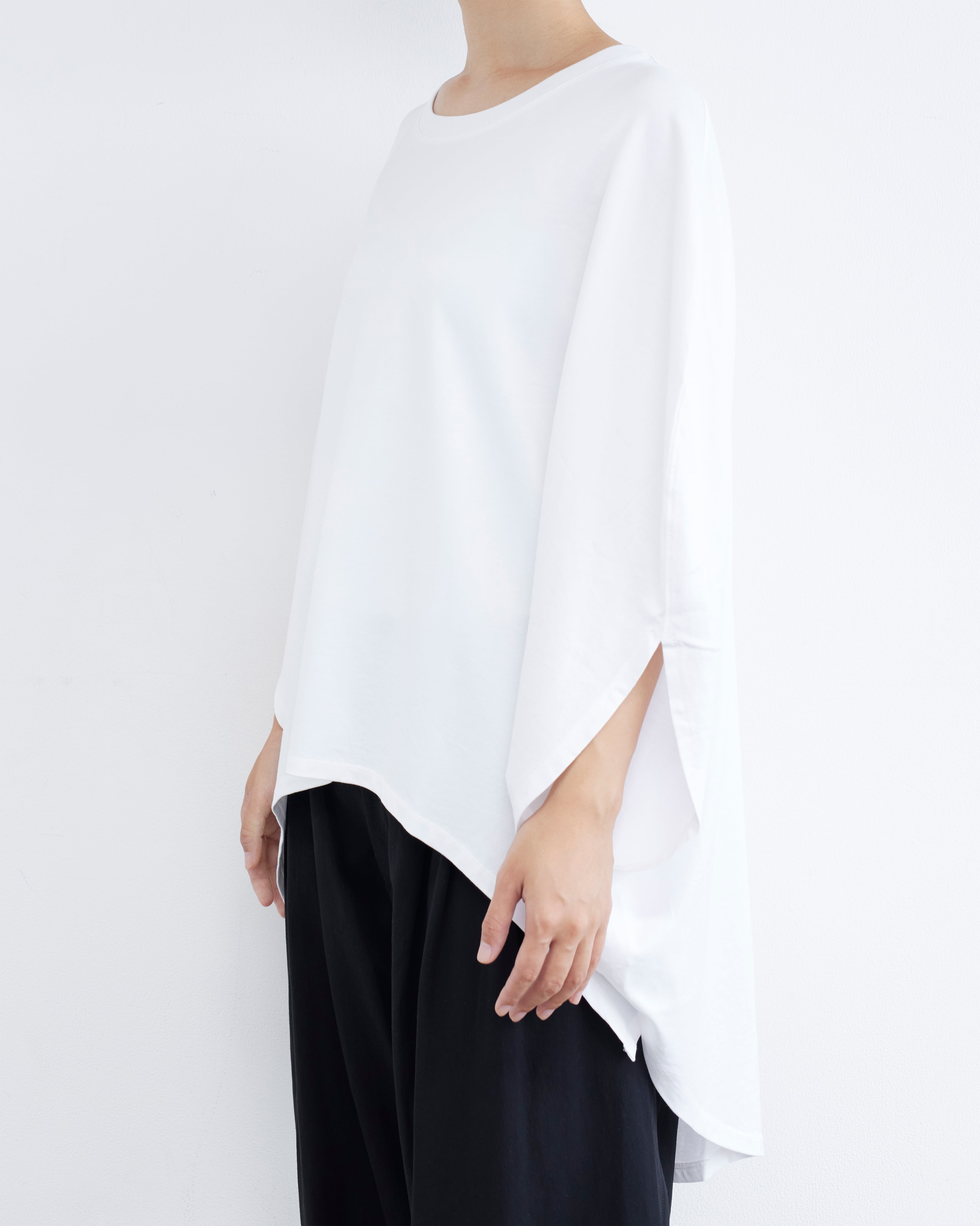 MARU TEE ・シンプルでユニークなデザインが特徴 ・細番手の糸を3本撚りしたコットン100%の上質な素材 ・柔らかな肌触りと滑らかな質感 ・直径90センチの円形パターン ・ネック部分にロゴ刺繍 ※ご購入前に画像でサイズをご確認ください。 Men Model 175cm Women Model 164cm