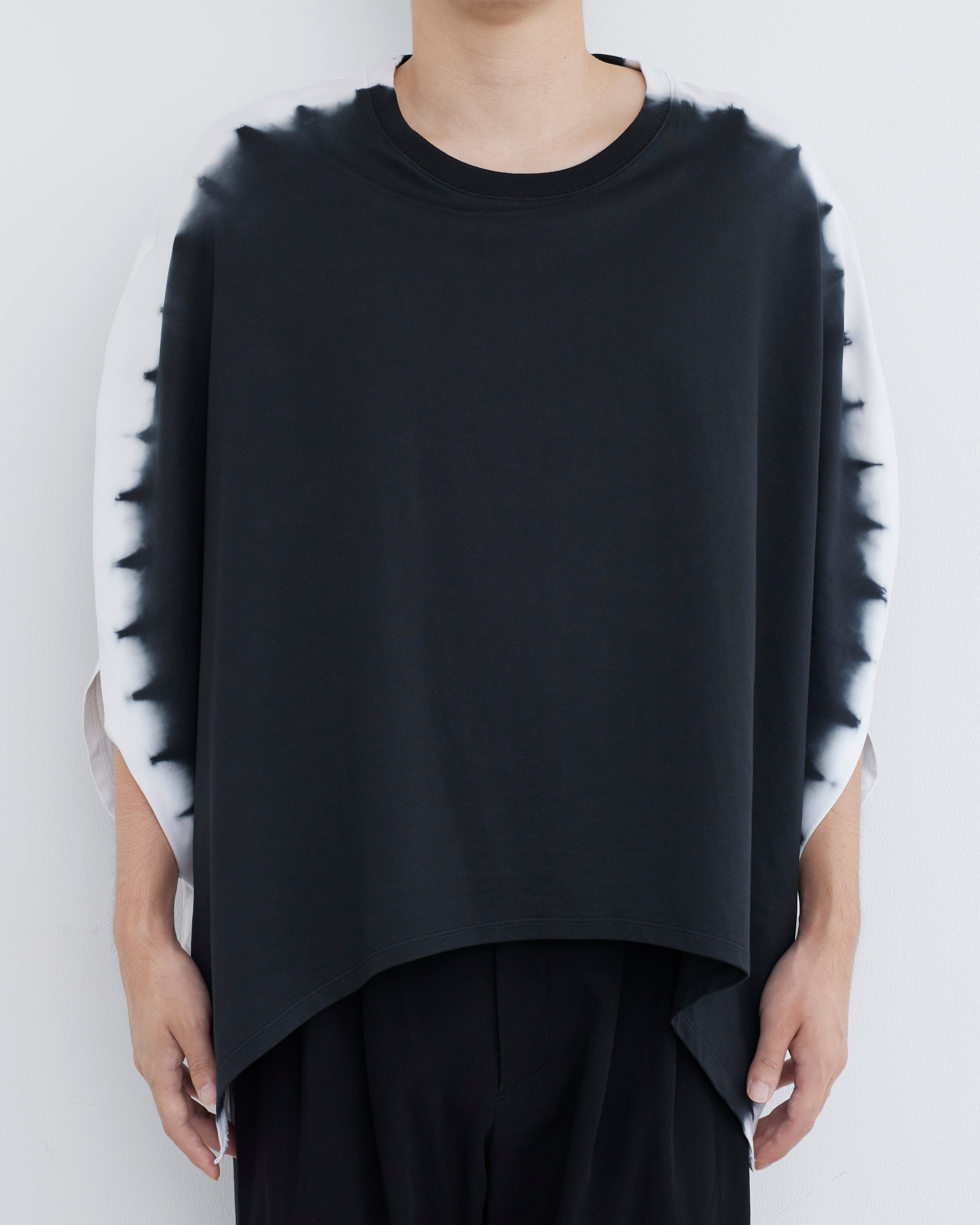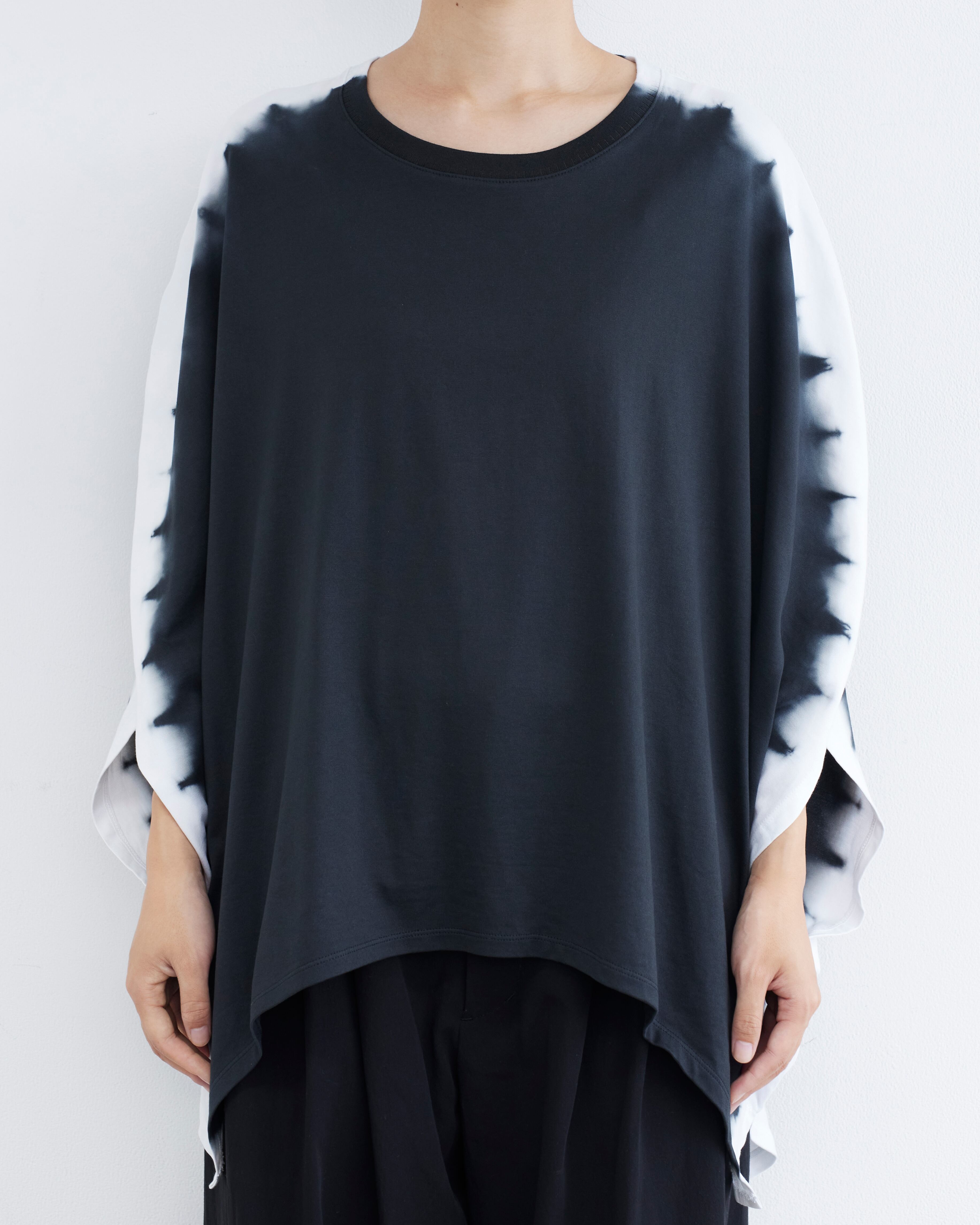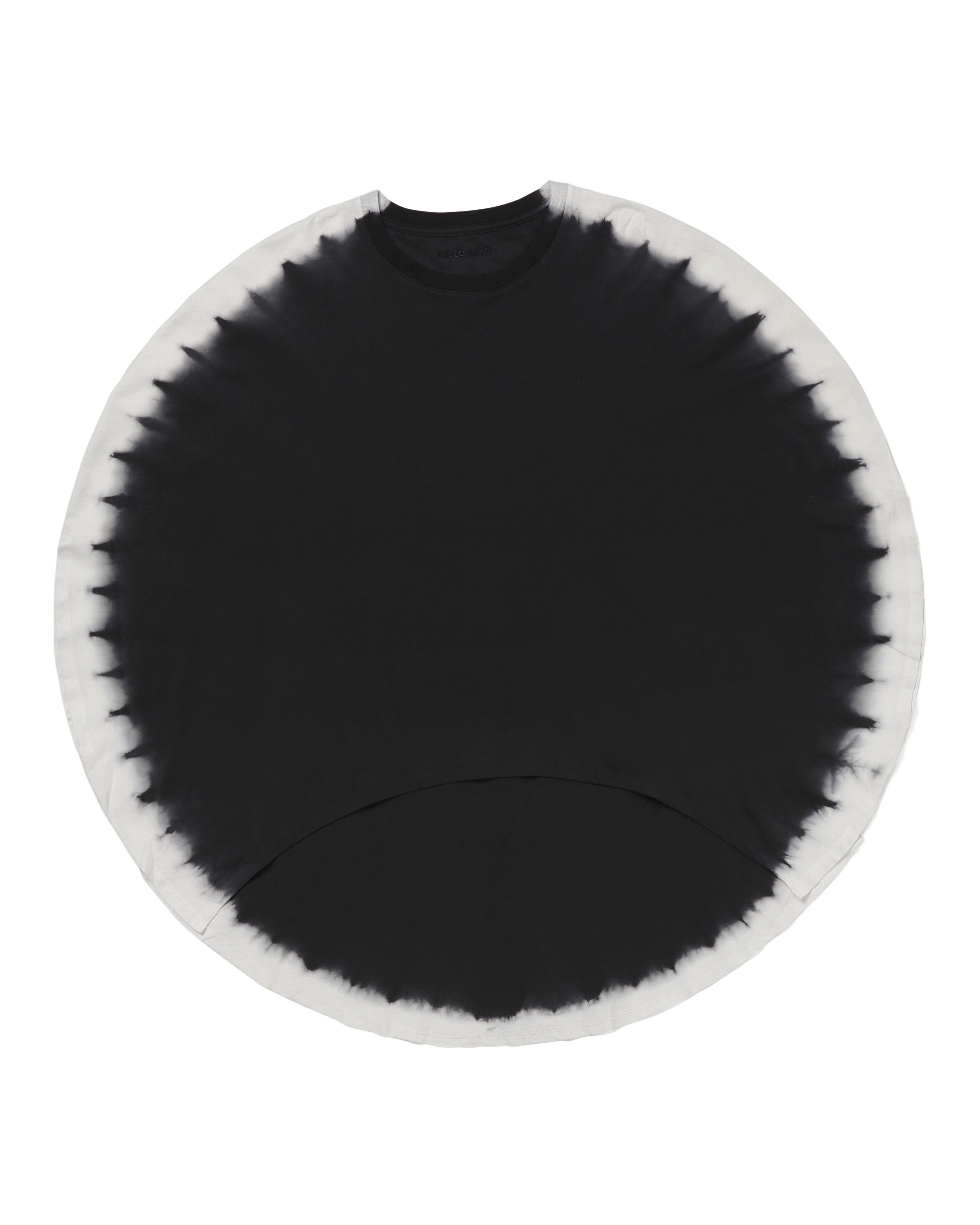 MARU TEE ・シンプルでユニークなデザインが特徴 ・細番手の糸を3本撚りしたコットン100%の上質な素材 ・柔らかな肌触りと滑らかな質感 ・直径90センチの円形パターン ・ネック部分にロゴ刺繍 ・職人の手作業による絞り染色 ※ご購入前に画像でサイズをご確認ください。 Men Model 175cm Women Model 164cm