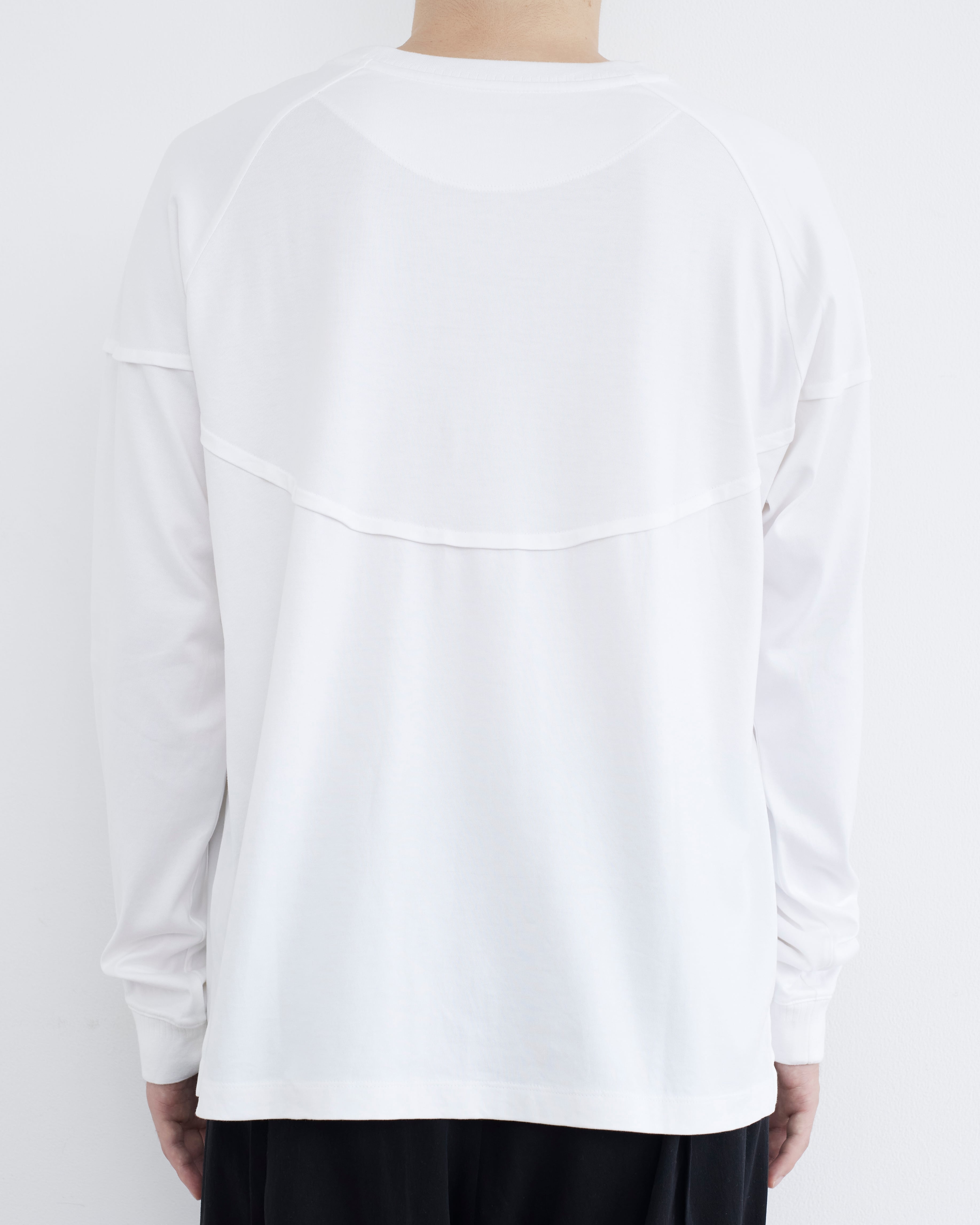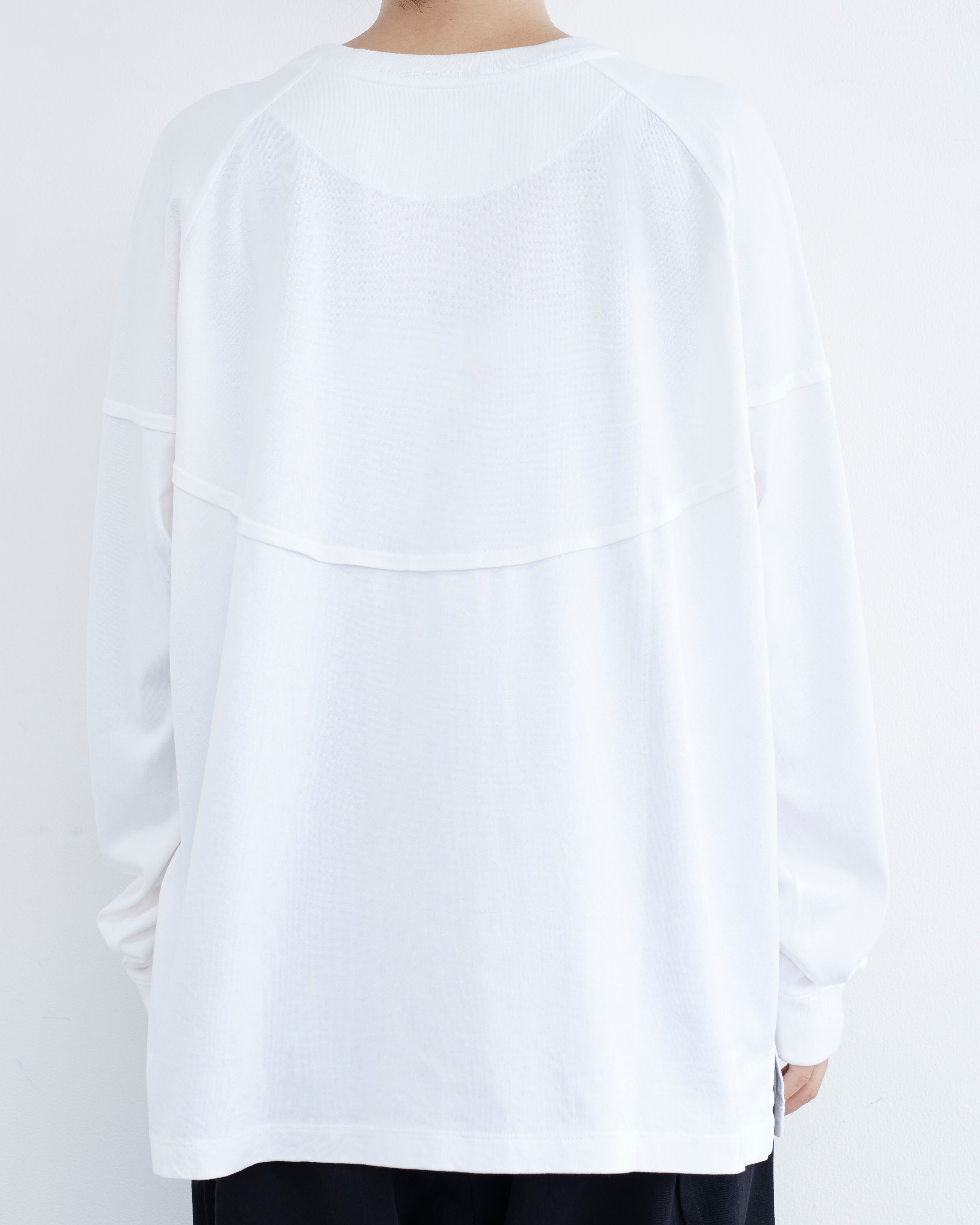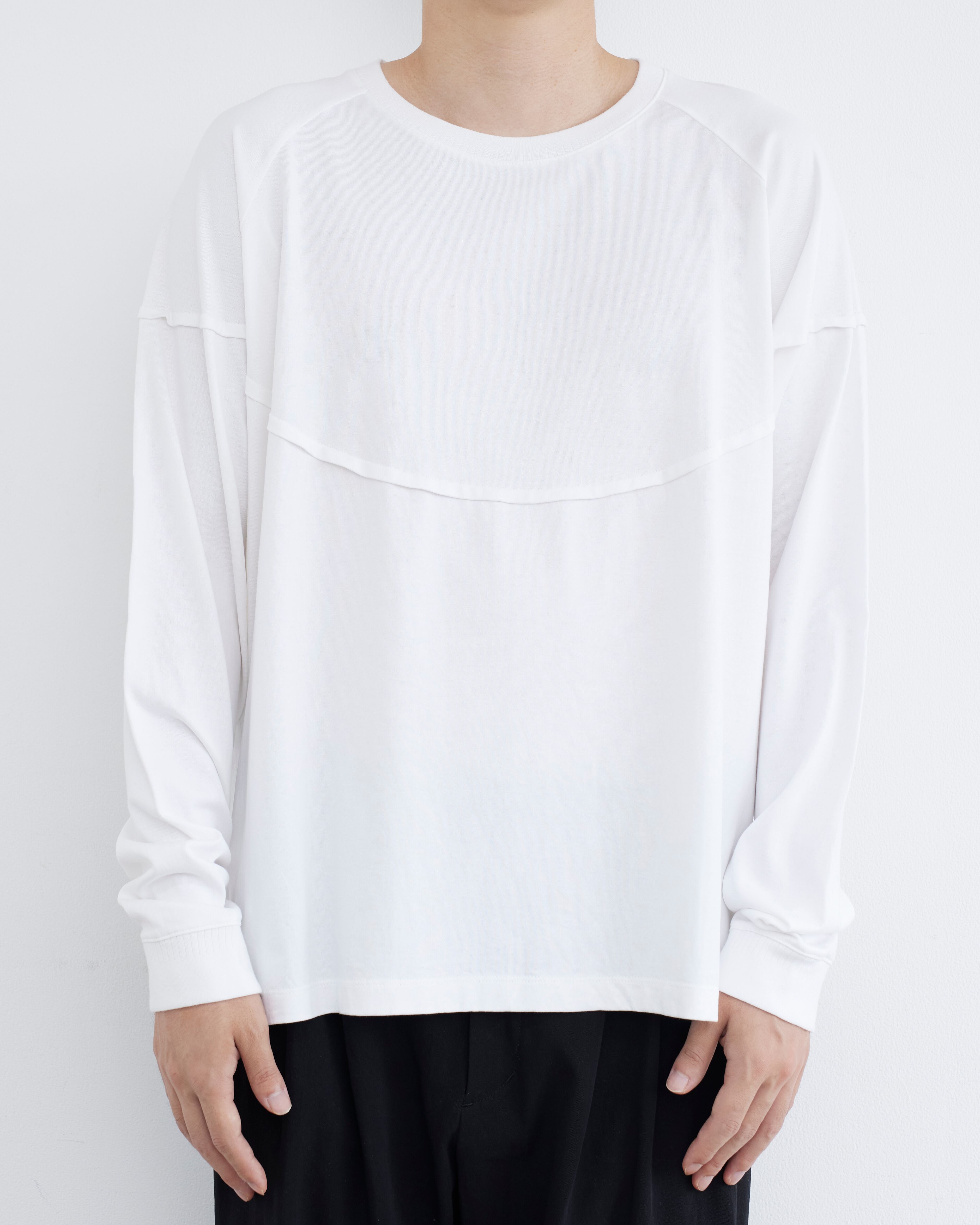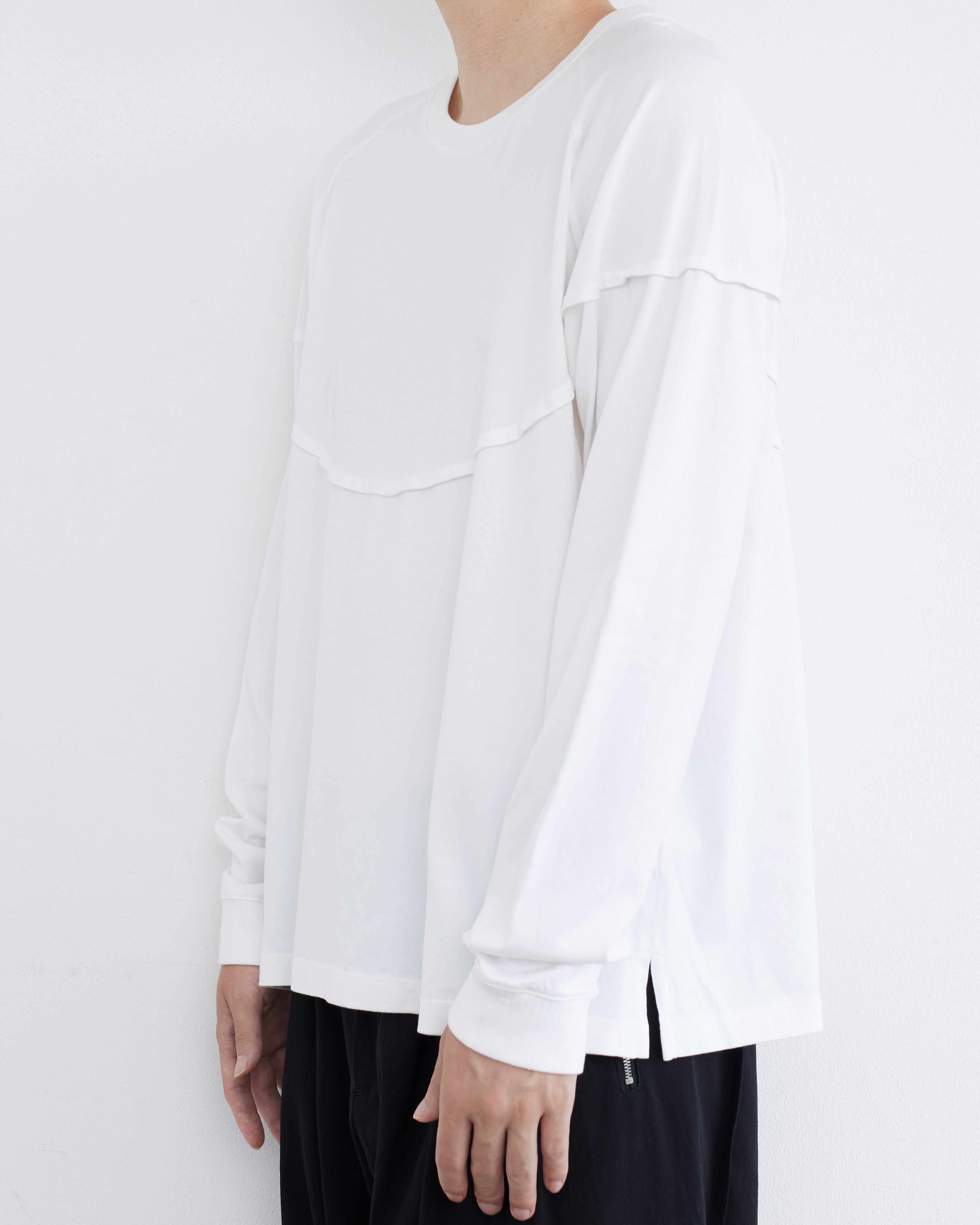 MARU Tシャツ ・長袖タイプ ・ビッグシルエットに直径70センチのマルの切り替え ・細番手の糸を3本撚りしたコットン100%の上質な素材 ・柔らかな肌触りと滑らかな質感 ・ネック部分にロゴ刺繍 ※ご購入前に画像でサイズをご確認ください。 Men Model 175cm Women Model 164cm